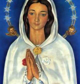 Nuestro Señor me envía para implantar una nueva devoción mariana en todos los institutos, en las comunidades religiosas y en todos los sacerdotes. Yo les prometo que si me veneran de esta manera especial, gozarán particularmente de mi protección. La rosa blanca simboliza el espíritu de oración. La rosa roja el espíritu de reparación y sacrificio. La rosa dorada el espíritu de penitencia. |